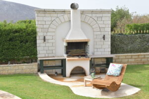 Outdoor living is a key highlight, with a gazebo, dedicated barbecue area, and multiple sitting areas, ideal for entertaining or relaxing in privacy. Additional features include a private parking area for up to four vehicles and a comprehensive security system with cameras, providing added convenience and peace of mind.